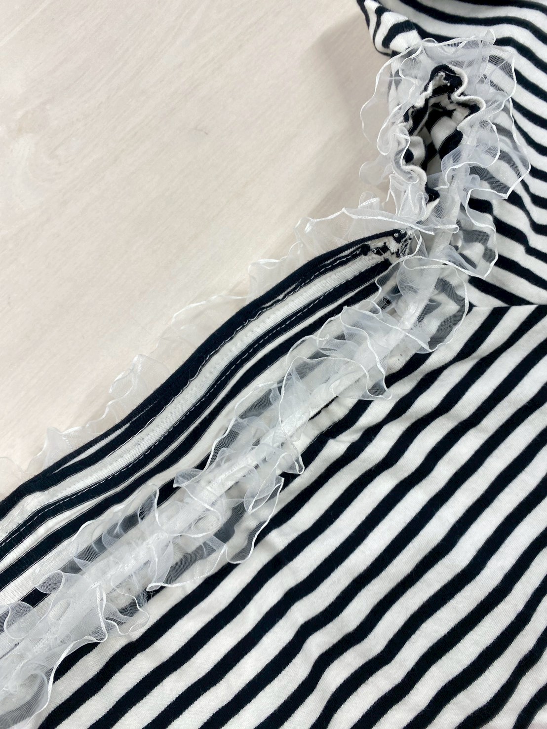 ボーダーの長袖は、レースのゴムを付けて、きつすぎず、緩すぎずできるように調整した。