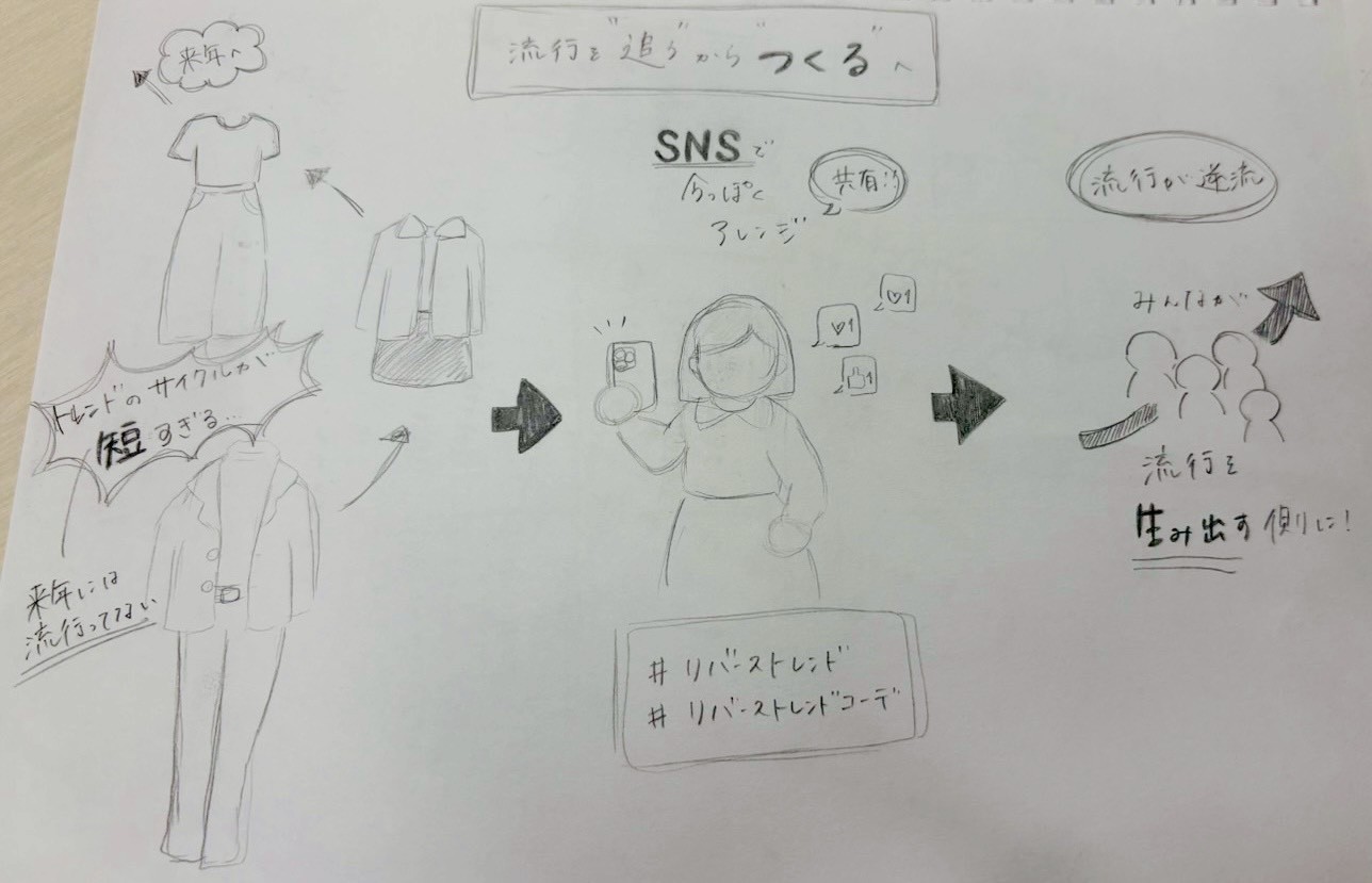 - トレンドはすぐ過ぎ去る。流行の逆流、“流行を追う側からつくる側へ”→リバーストレンドコーデ