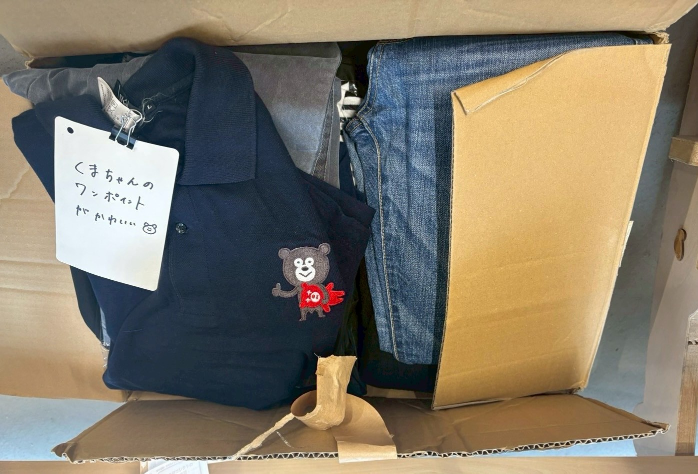 HarchさんとSYKLUSさんからご提供いただいた服が届いたので、グループごとに選別した。