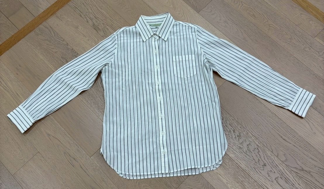 リメイク服2着作成(ボーダー長袖→オフショル、ズボン→ミニスカ、黒シャツ×ストライプシャツ)