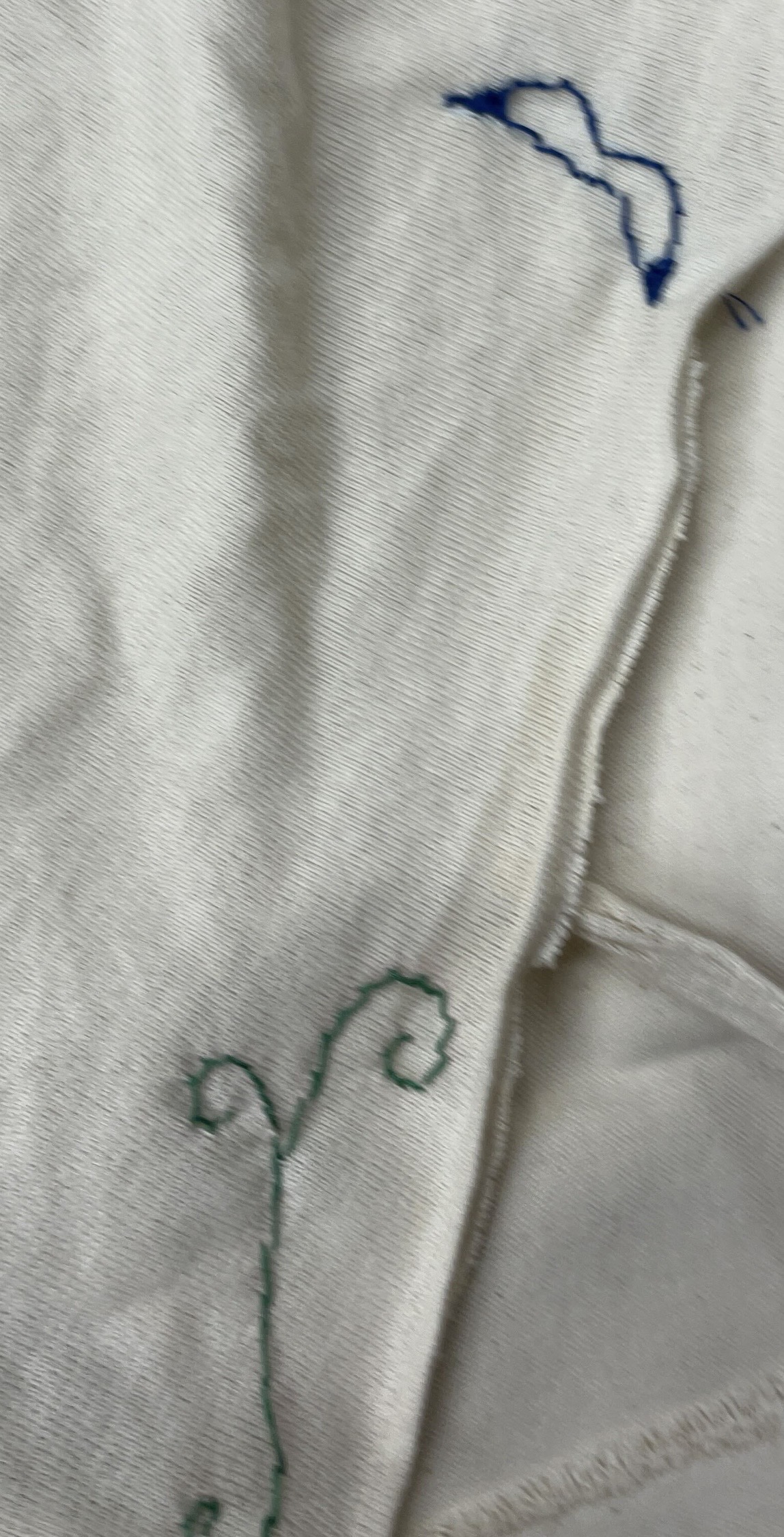 ツタ:横浜市の花である薔薇をボタン変わりに装着するため、その周辺にツタを刺繍した。