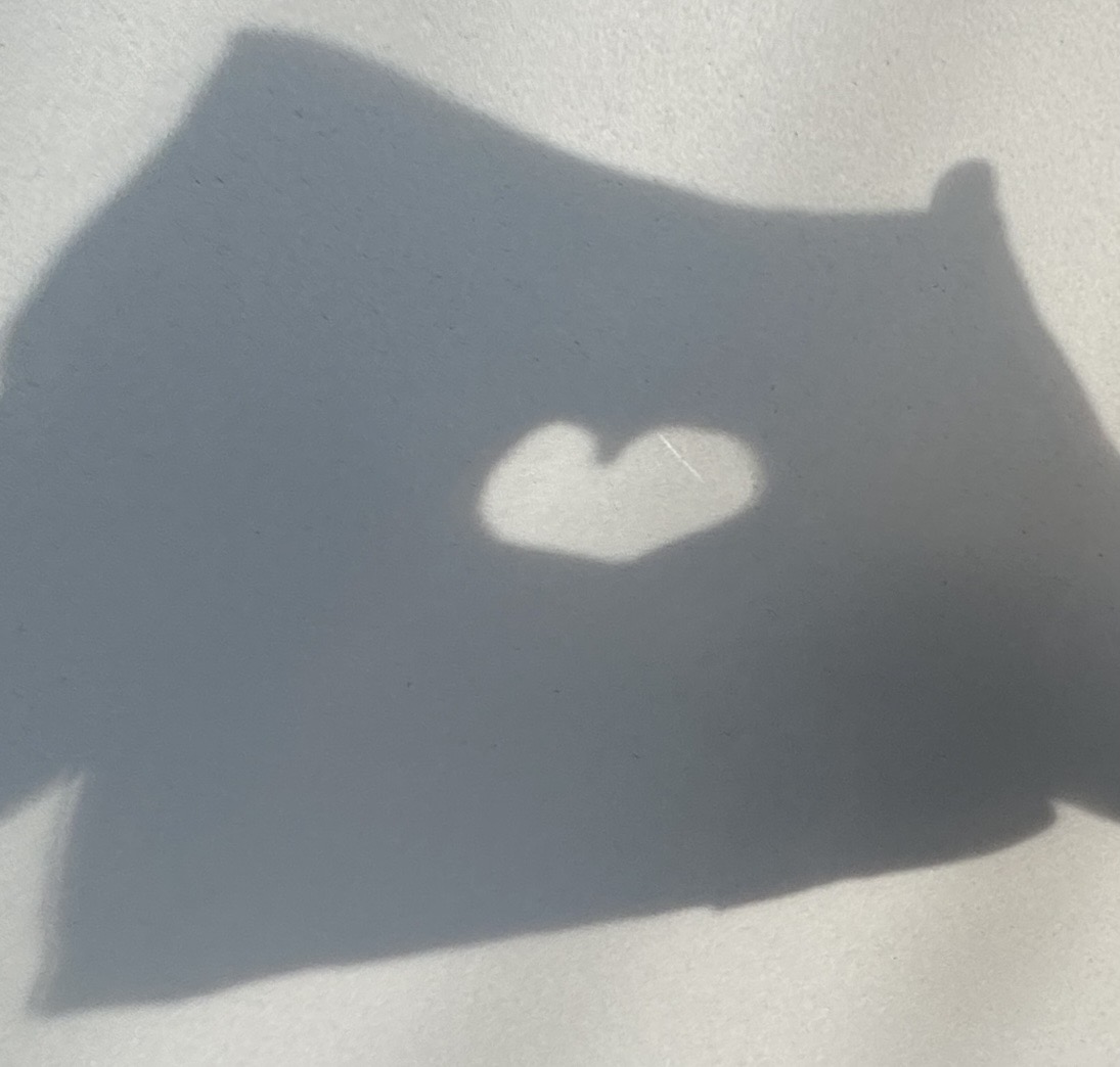 ハートの切り抜きをする。(陰で押しと写真撮影・切り抜きを窓にして、人と園芸を同時に撮影)。